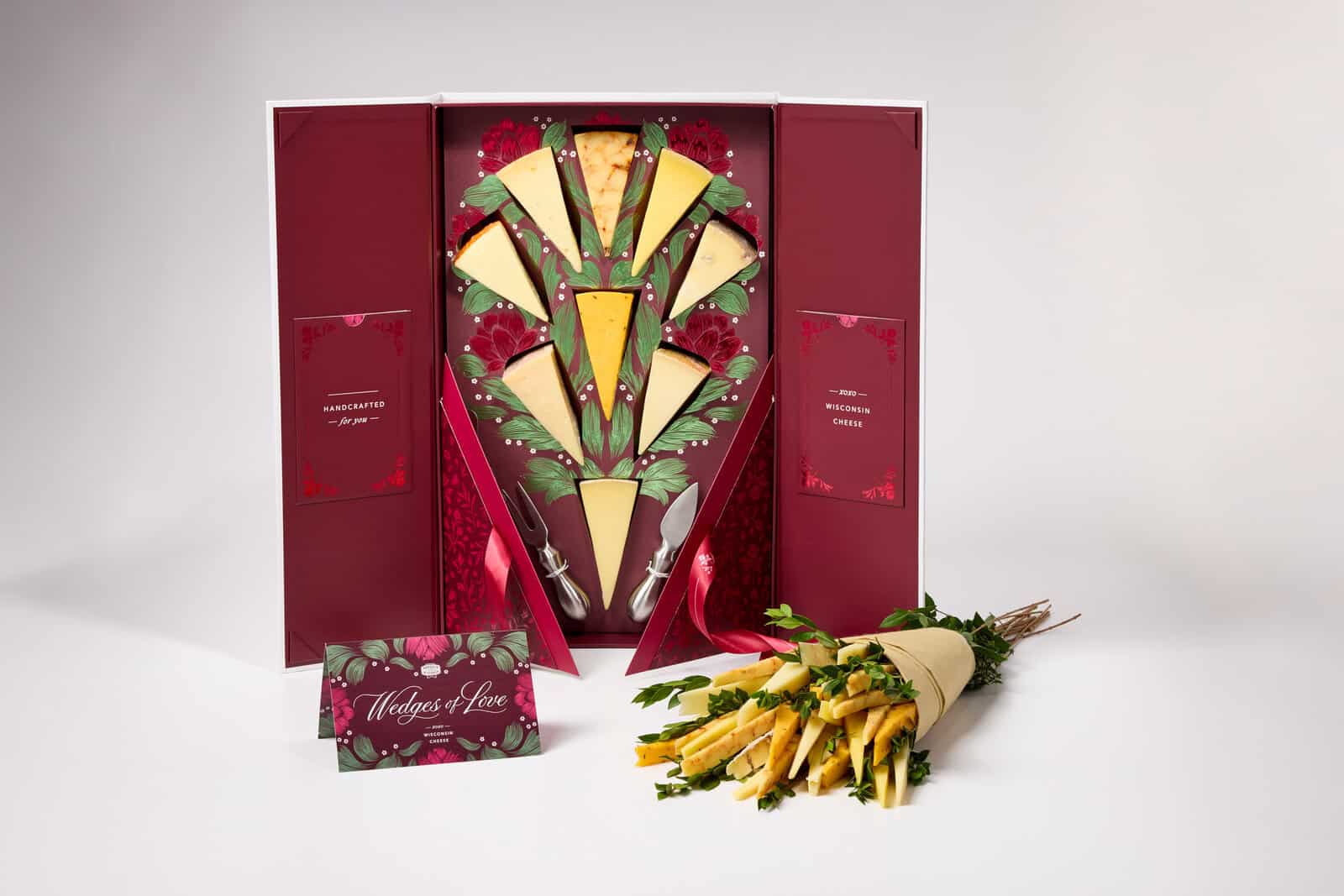 Words of affirmation. Quality time. Physical touch. Acts of service. Cheese. Those are the five love languages, and Wisconsin Cheese is capitalizing on the best one Valentine’s Day. They’ve just debuted their “Wedges of Love”—a limited-edition, artisan cheese “bouquet” intended to be gazed at longingly and then devoured. Because nothing says romance like a night of gastrointestinal distress. Swoon.